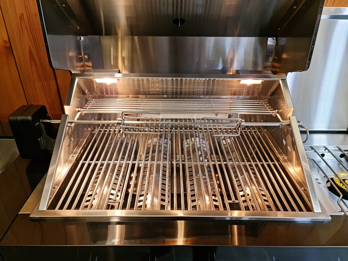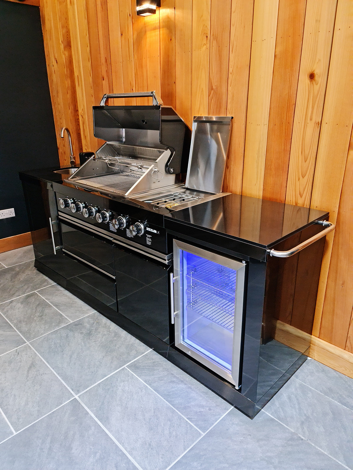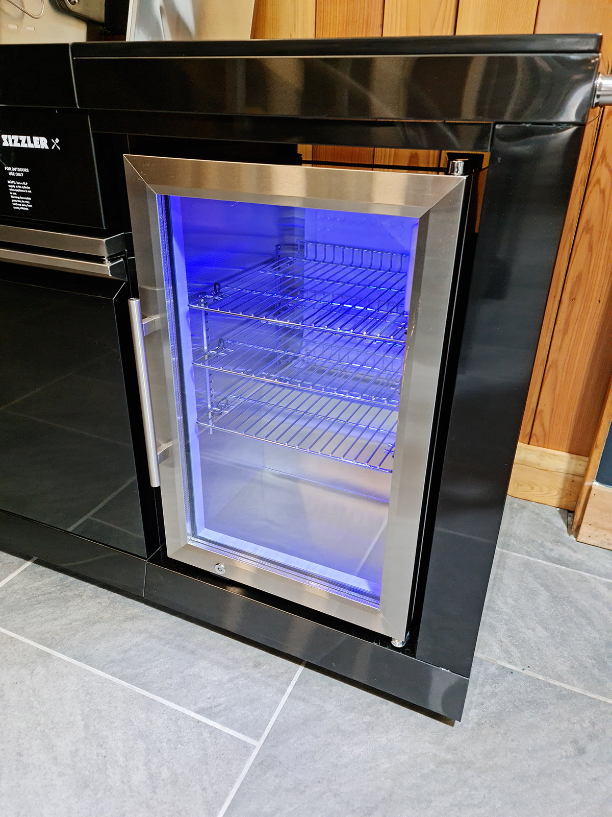 Love a good BBQ? Take your BBQ dining experience to a whole other level by adding a Sizzler Outdoor Kitchen. With all the features to enhance your outdoor dining, we are confident that the Sizzler will be the only outdoor kitchen you’ll ever need! With The Sizzler having four main stainless steel burners on the grill, you’ll never run out of space to cook! It also comes with an additional infrared back burner and has a useful side burner for cooking your favourite sauces and vegetables. The Sizzler comes with a stainless steel hood. The built-in thermometer gauge allows you to regulate the temperature for that perfect slow cooked roast. It also comes with a lockable fridge and sink. The Sizzler has your drinks protected, illuminating them with blue LED lighting! The integrated motorised stainless steel rotisserie makes it simple to cook and gives you excellent results.